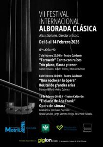 El tercer y último espectáculo será el jueves 13 de febrero, a las 20:00 horas, con “El diario de Ana Frank”, una ópera de cámara de gran carga emocional y simbólica, protagonizada por Auxiliadora Toledano (soprano), con Jorge Moreno Pieiga como director de escena y Alexis Soriano como director musical. Una propuesta íntima y conmovedora que invita a la reflexión a través de la música y el teatro, poniendo voz a una de las historias más universales del siglo XX.