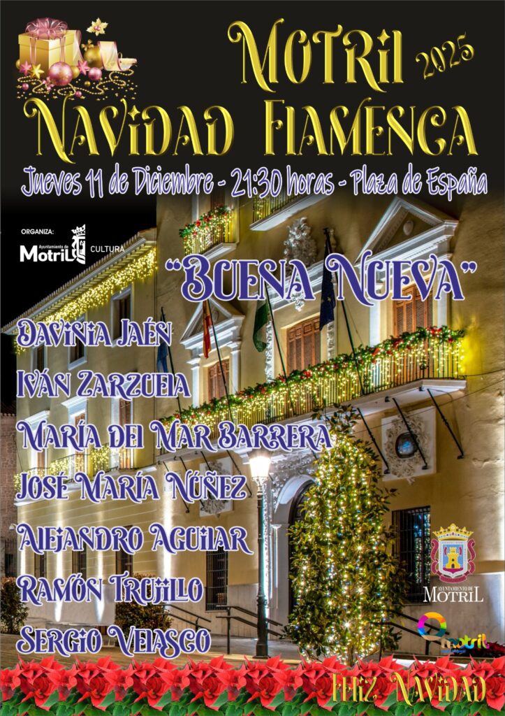 ‘Navidad Flamenca 2025’, el próximo jueves 11 de diciembre a las 21:30 horas en la Plaza de España. El conjunto está formado por Davinia Jaén, Iván Zarzuela, María del Mar Barrera, José María Núñez, Alejandro Aguilar, Ramón Trujillo y Sergio Velasco, quienes ofrecerán un recital pensado para compartir en familia y disfrutar del espíritu navideño bajo […]