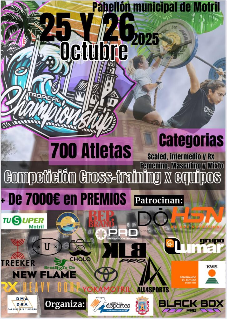 Tercera edición del Tropical Championship 2025. Motril se prepara para vivir un fin de semana lleno de energía, deporte y espectáculo con la celebración del Tropical Championship 2025, una competición de cross-training que reunirá a casi 700 atletas de toda España. Días 25 (mañana y tarde) y el domingo 26 de octubre (hasta las 16:00 […]
