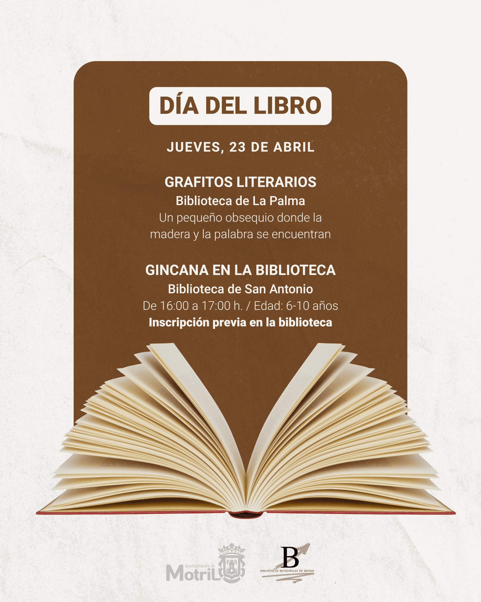 Motril conmemora el Día Internacional del Libro con dos actividades dinámicas en las bibliotecas municipales con el objetivo de seguir fomentando la lectura en todas las edades, especialmente desde jóvenes.