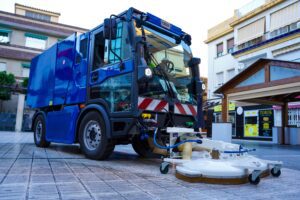 A través del uso de esta máquina fregadora-decapadora de aceras se van a llevar a cabo actuaciones de recuperación de pavimentos y eliminación de elementos como chicles, especialmente en aceras de avenidas y en plazas, gracias al óptimo sistema de calidad. Esta nueva máquina consigue un decapado superficial que no daña al pavimento y elimina todo tipo de suciedad, incluso la incrustada en el pavimento. Además de la campana, el operario dispone también de dos pistolas para lanzar agua a presión y arrastrar la suciedad hacia los imbornales en los lugares a los que no llegue la campana e incluso puede eliminar los chicles pegados en las aceras.
