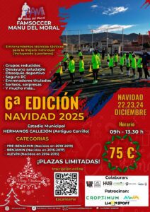 FAMSOCCER Manu del Moral es un programa intensivo de perfeccionamiento dirigido a jóvenes futbolistas que se celebrará los días 22, 23 y 24 de diciembre, en horario de 09:00 a 13:30 horas en el Estadio Municipal Hermanos Callejón (antiguo Cerrillo).