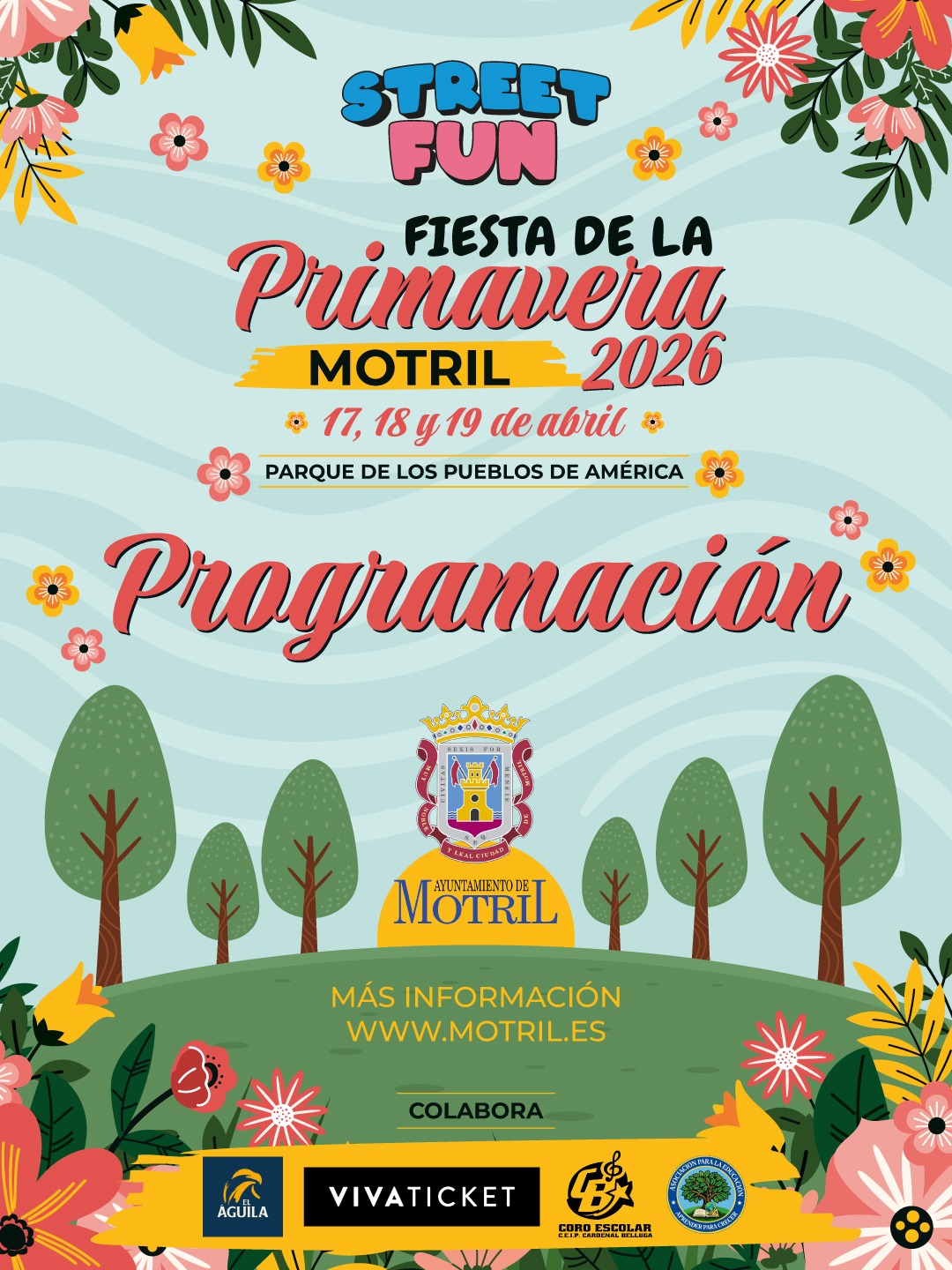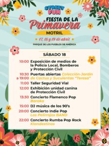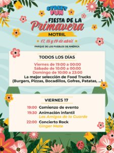 ¡Vuelve la Fiesta de la Primavera a Motril! Ya puedes consultar la programación completa de este evento único que traerá actividades muy diversas y para toda la familia. Tendrá lugar en el Parque de los Pueblos de América el 17, 18 y 19 de abril.