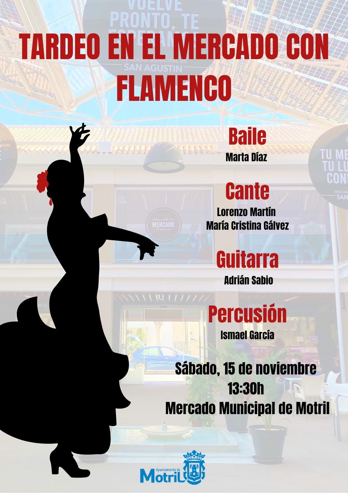 Llega a Motril el Tardeo en el Mercado Municipal. Un espectáculo de flamenco y cante que llenará de vida y actividad nuestro Mercado Municipal con artistas locales el próximo sábado. Déjate llevar por la magia del flamenco en un ambiente único. El sábado 15 de noviembre a partir de las 13:30 horas.