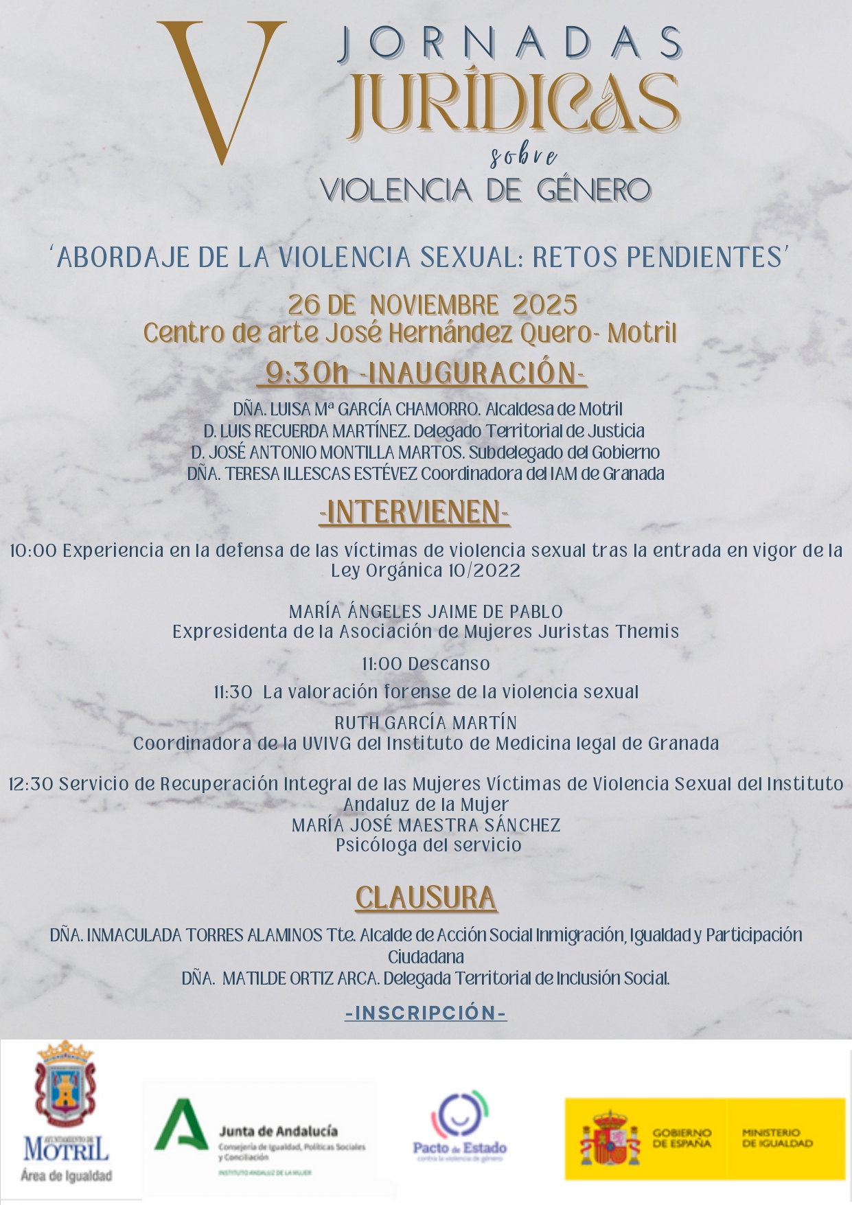 V Jornadas Jurídicas sobre Violencia de Género ‘Aborde en la violencia sexual: retos pendientes’. Miércoles, 26 de noviembre de 2025 a las 09:30 horas en el Centro de Arte José Hernández Quero.