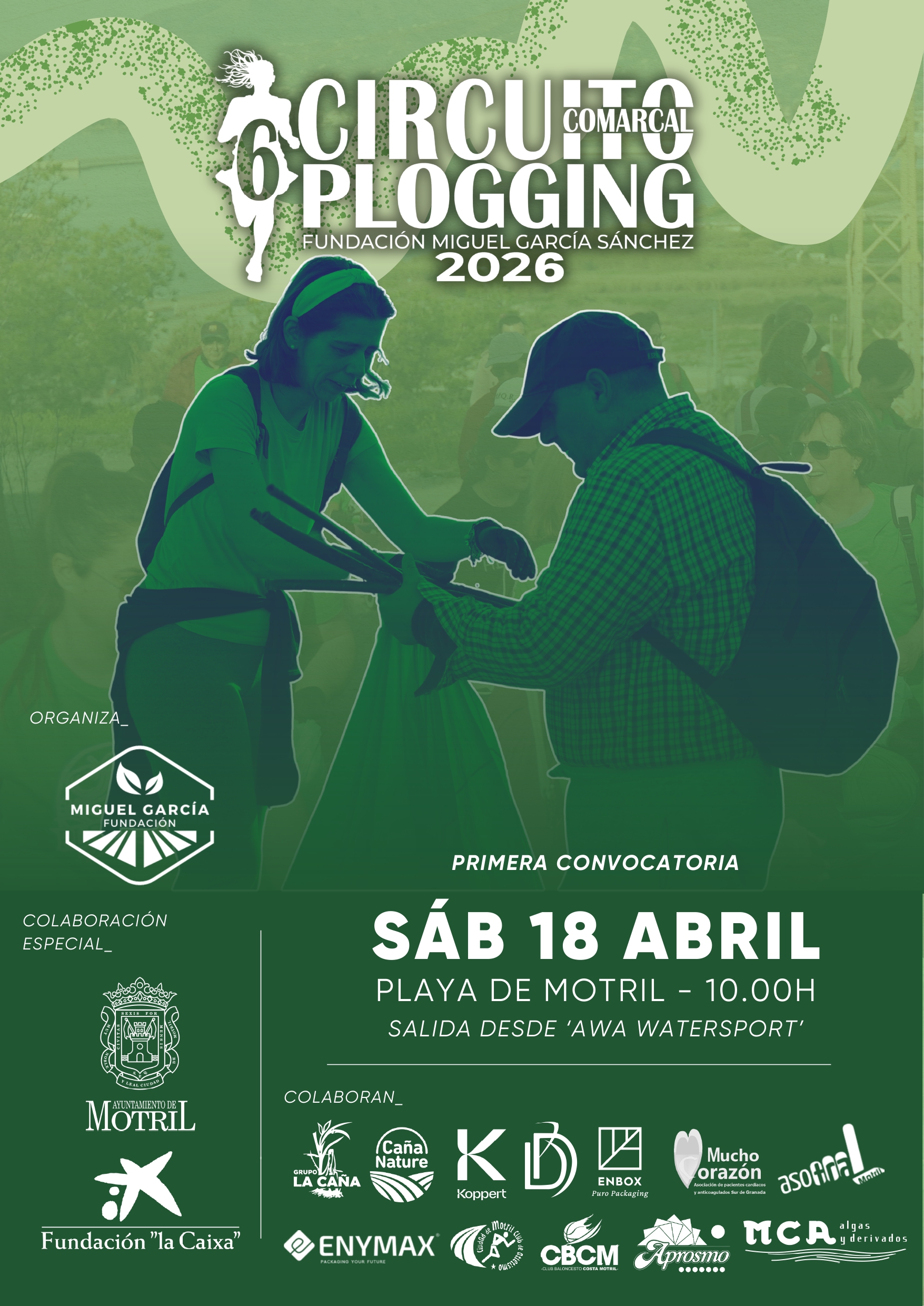 El Circuito Comarcal de Plogging refuerza su compromiso con el deporte y el cuidado del medio ambiente. La Fundación Miguel García impulsa la sexta edición de este proyecto que engloba cuatro recorridos por la playa de Motril, Vélez de Benaudalla, Salobreña y Puntalón, cuyo comienzo será el sábado 18 de abril a las 10:00 horas desde las instalaciones de ‘Awa Watersport’.