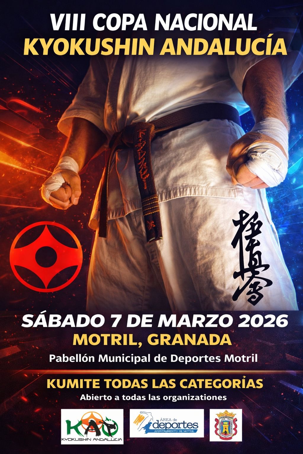 Más de 250 karatecas tienen cita este sábado 7 en la VIII Copa Nacional de Kyokushin. El Pabellón Municipal de Deportes de Motril será escenario este sábado 7 de la Copa Nacional de Kyokushin Andalucía, organizada por el gimnasio Mawashi, en una jornada que reunirá a alrededor de 250 deportistas de distintas edades y categorías.